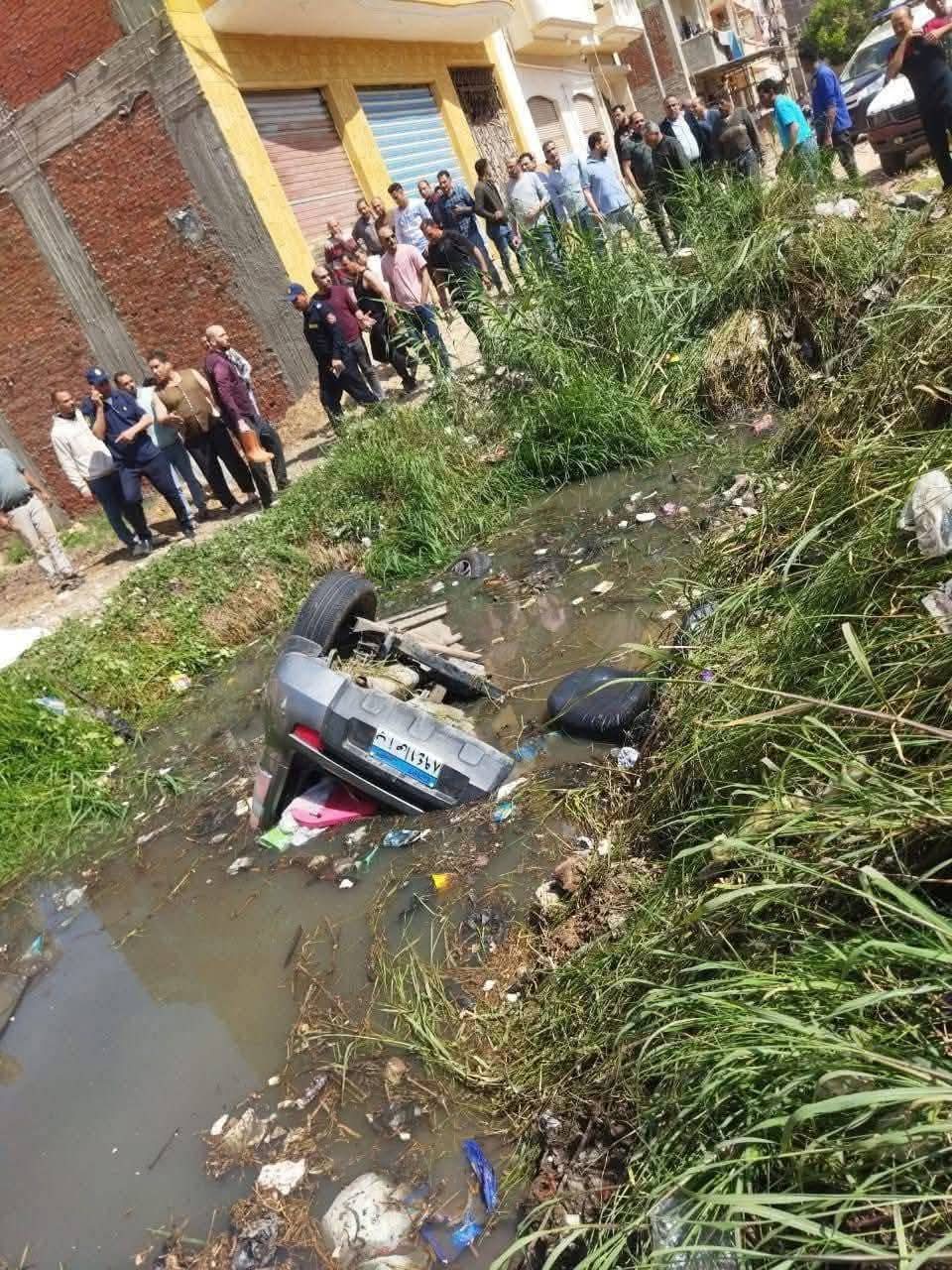 مصرع أم وإبنتها غرقا في حادث إنقلاب سيارة ملاكي بمصرف بأرض الحوفي بدمنهور